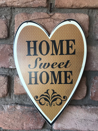 "Home Sweet Home" Rustic Metal and Wood Heart Hanging Sign