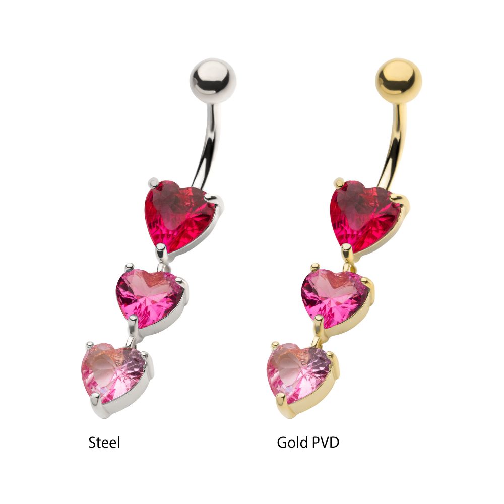 Pink Shades Triple Heart Dangle Belly Ring