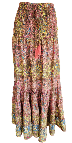 Pink Lemonade Boho Ruffle Ruched Waist Midi Skirt
