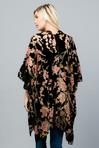 Dark Floral Velvet Burnout Kimono