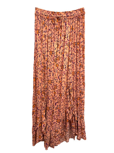 Pink Floral Vine Double Slit Maxi Skirt