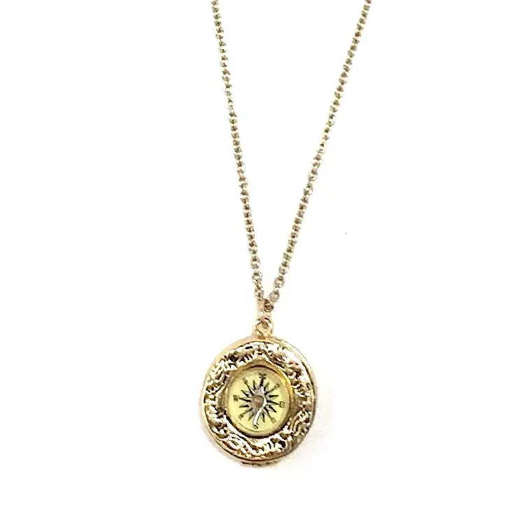 Find your way with our Compass Locket Necklace.Chain: Gold Plated over Brass, Silver Plated over Brass, approx. 24" + 3" ExtensionPendant: Gold Plated over Brass, Silver Plated over Brass, approx. 1" x 0.9"