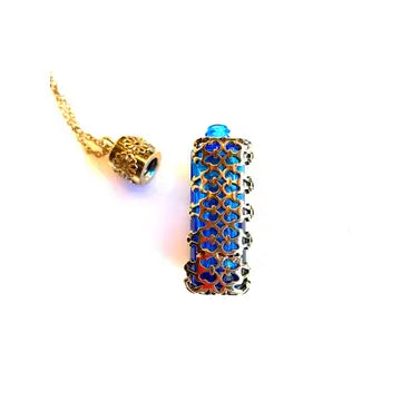Filigree Metal Enclosed Blue Glass Bottle Necklace