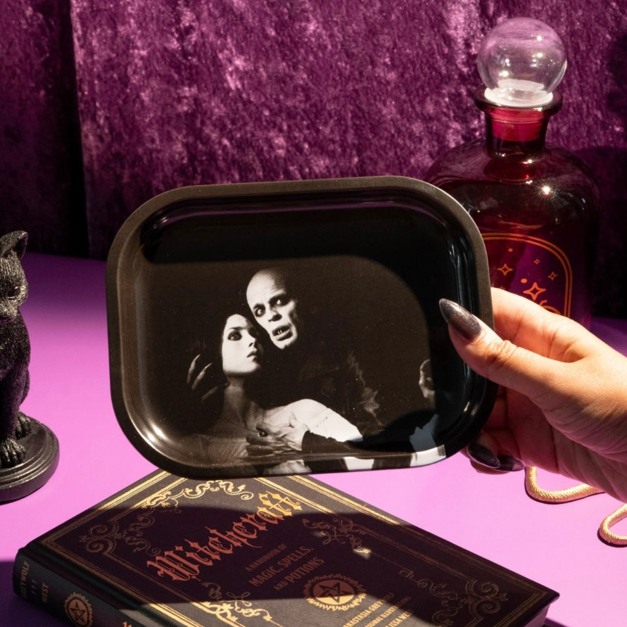 This vampy tray features Ellen mid-trance and Count Orlok closing in. Perf for rolling or as a lil trinket tray around your home. Spooky, functional, and sure to be a conversation starter. Super limited edition- when they're gone, they're gone!