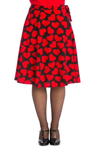 Black and Red Heart Wrap Tie Skirt