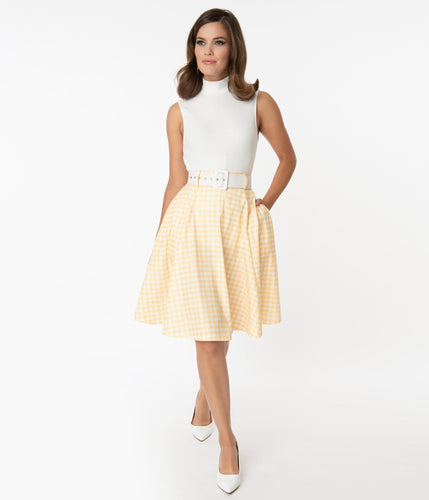 Yellow Houndstooth Chorus Girl Swing Skirt