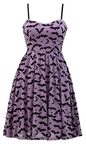 Lilac and Black Spooky Bats and Moons Mesh Fit and Flare Dress