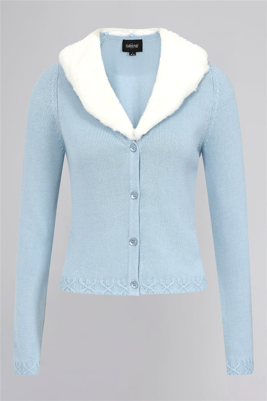 Snuggle into our Fleur Faux Fur Cardigan! This vintage inspired style includes a large fluffy collar which is removable, making this perfect for the whole year round!