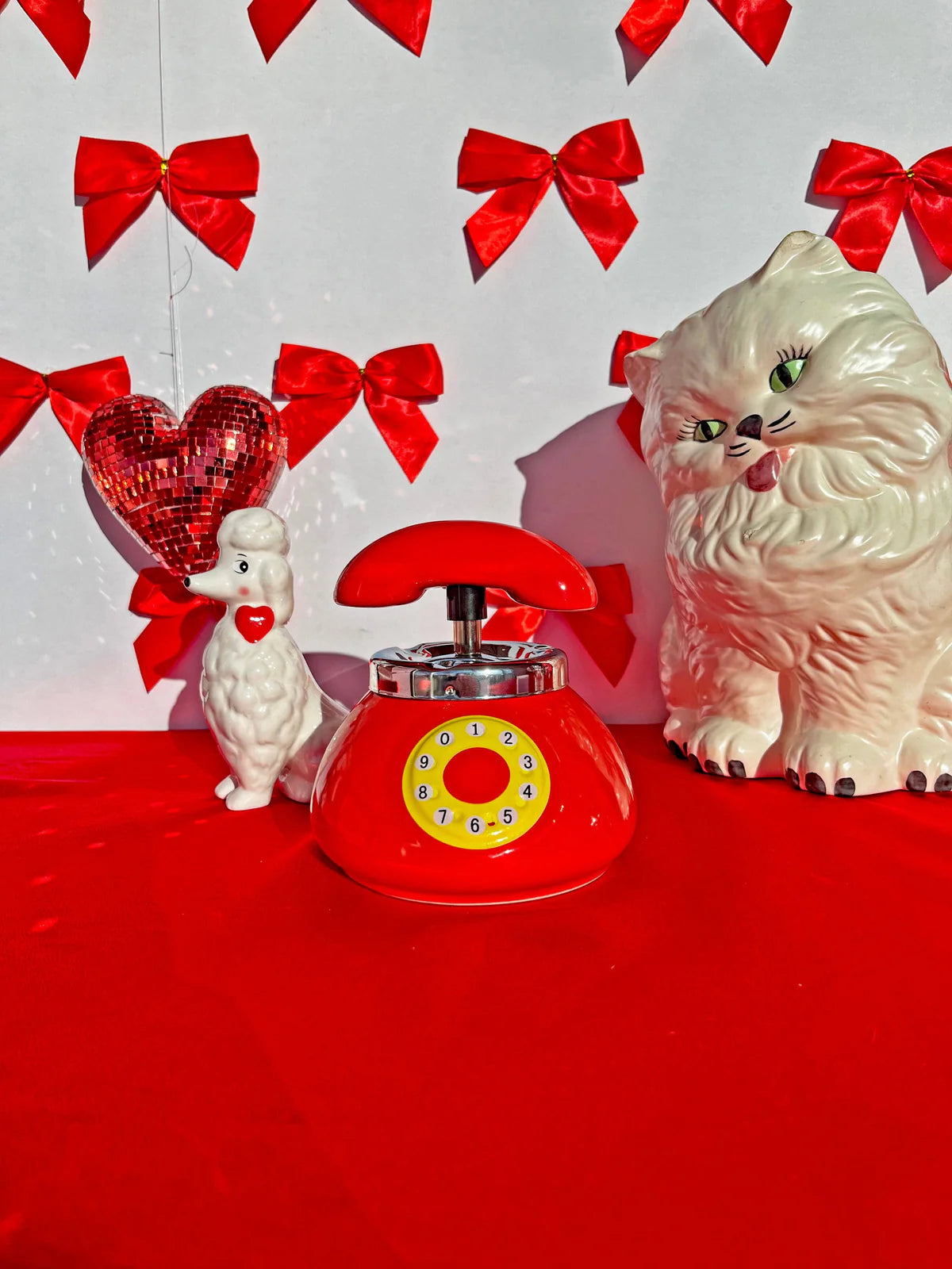 Your ashes called and they want to upgrade to a better service ☎️ How cool is this vintage inspired rotary phone ashtray?? Made from ceramic and metal. The coolest part about this is that it hides your ashes! Simply press down on the phone handle and your ashes fall right into the container. Lid is removable for cleaning! Measures approx. 6" x 6" x 5"