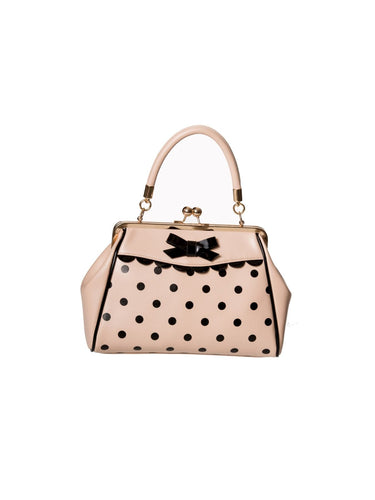 Nude and Black Polka Dot Bow and Scallop Kisslock Purse