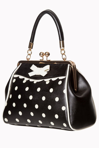 White and Black Polka Dot Bow and Scallop Kisslock Purse
