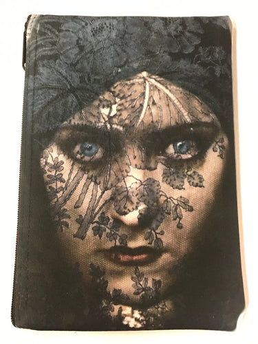 Blue Eyed Woman With Lace Veil Print Pouch