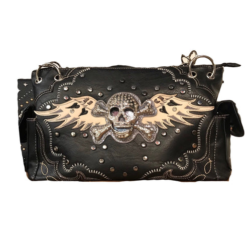 Black Skull with Wings Shoulder Purse