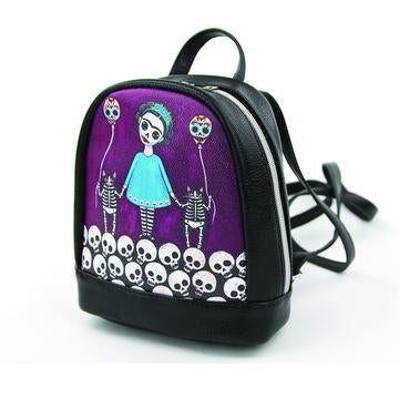 Purple Glitter Quilted Bat Studded Mini Backpack