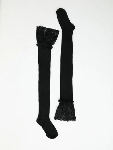 Black Lace Trimmed Knee High Socks