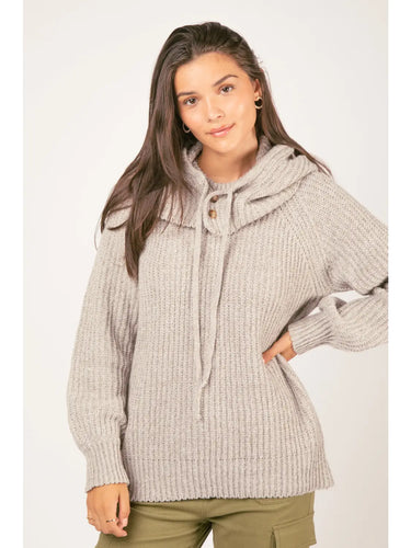 Heather Gray Oversized Balaclava Hoodie Soft Knit Sweater
