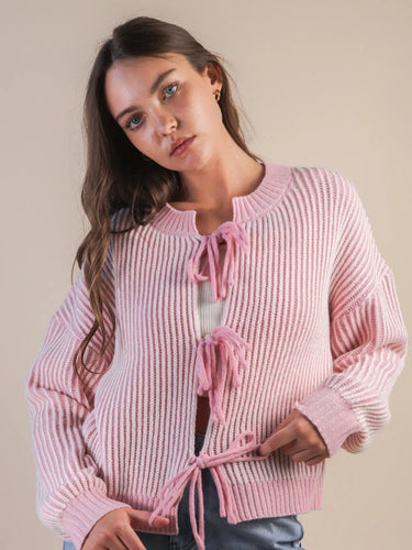 Pink on Pink Two Tone Tie Front Cardigan- LOW INVENTORY!