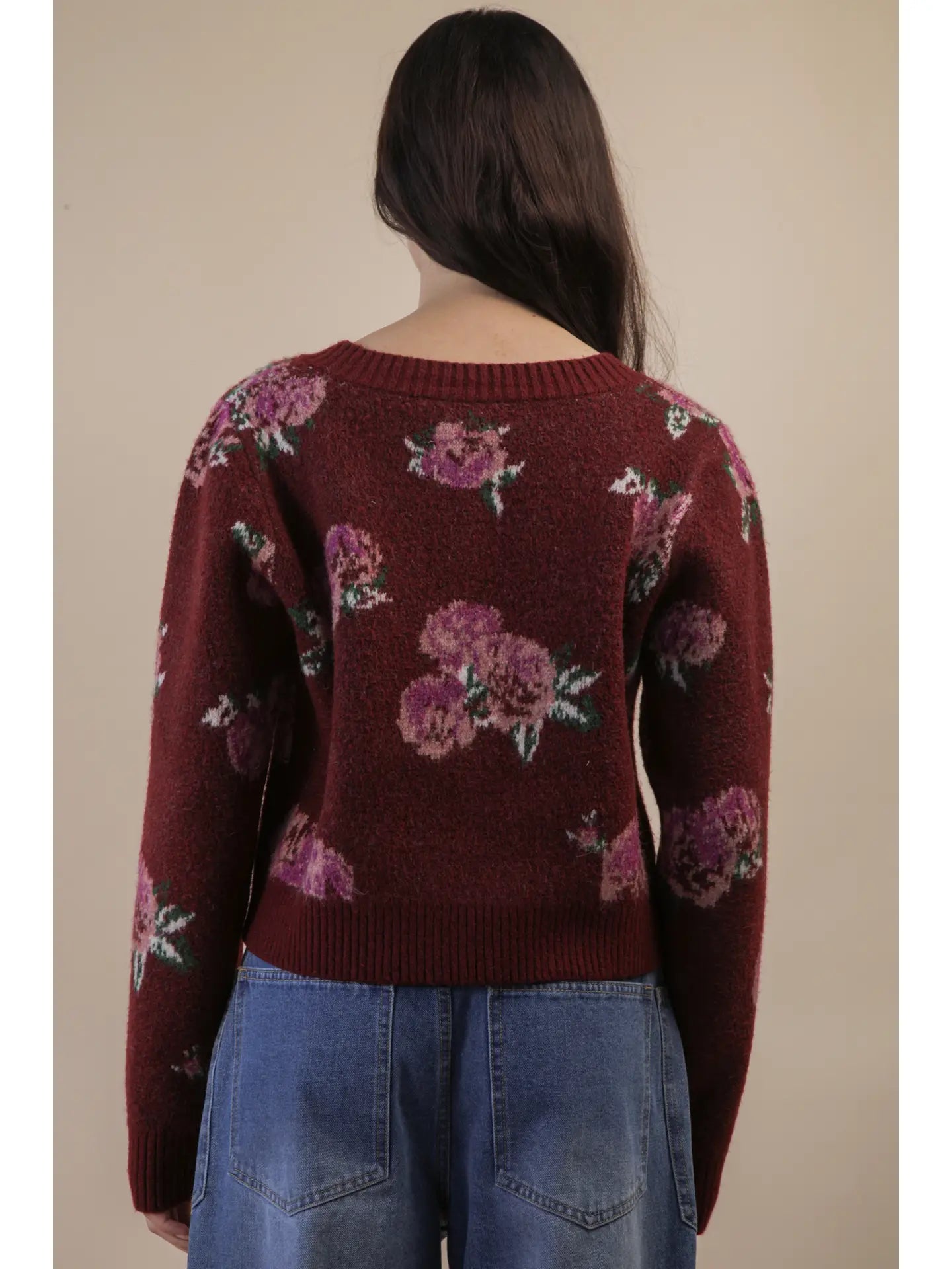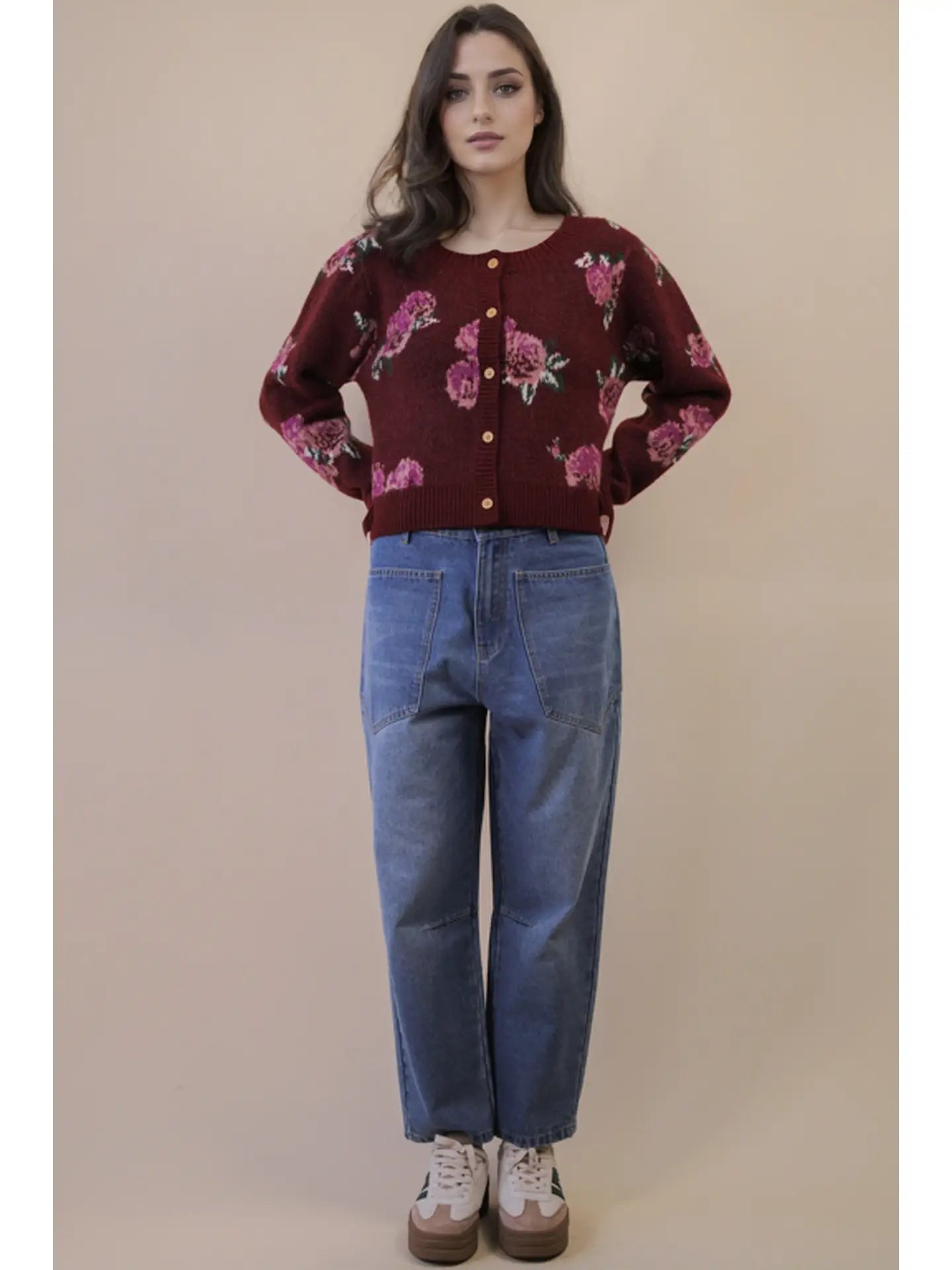 Romantic with this Wine Floral Soft Cardigan, featuring a gorgeous printed burgundy rose design that's anything but boring. The button-down front makes layering effortless, while the classic round neckline and ribbed hem keep everything polished and put-together. Perfect for throwing over your favorite tee or dress, this cozy piece adds instant charm to any outfit.