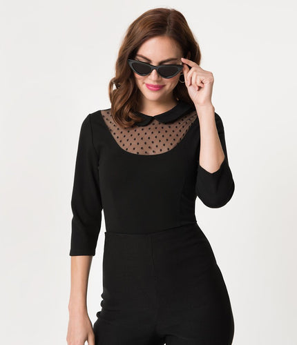 Black Mesh and Swiss Dot Stretch Knit Fitz Top