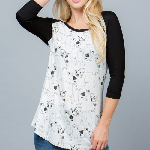 Black V-Neck U-Hem 3/4 Sleeve Top
