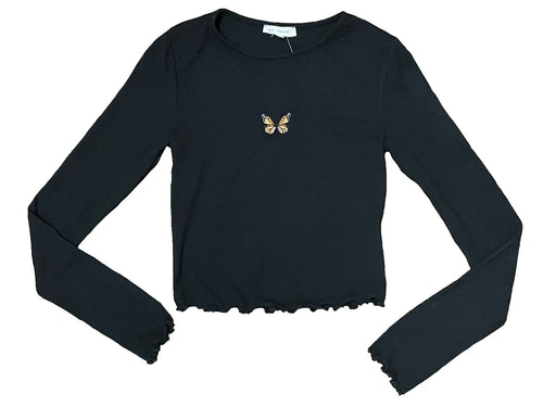 Butterfly Embroidered Long Sleeve Crop Top