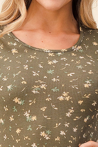 Olive Ditsy Flower Thermal Long Sleeve Top