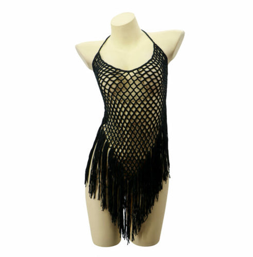 Velvet and Beaded Tassel Leopard Print Halter Top