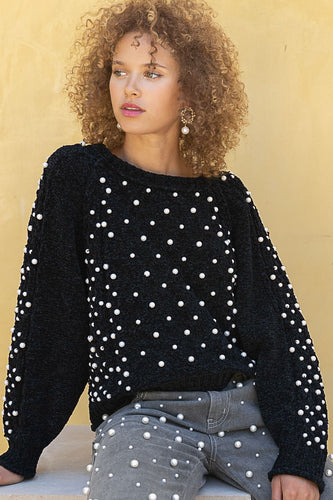 Heart Printed French Terry Knit Thumb Opening U-Neck Sweater Top