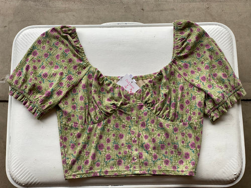 Pink Floral Chiffon Sweetheart Front Tie Smocked Back Crop Top